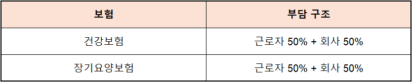 즉 두 보험 모두 회사와 근로자가 함께 부담하는 구조입니다.