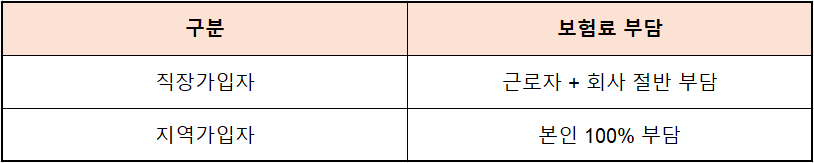 직장가입자와 지역가입자의 가장 큰 차이점은 보험료 부담 구조입니다.