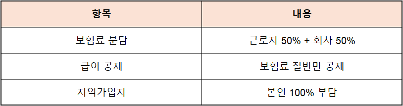 이 구조 덕분에 직장가입자의 보험료 부담은 지역가입자보다 상대적으로 낮은 편입니다.