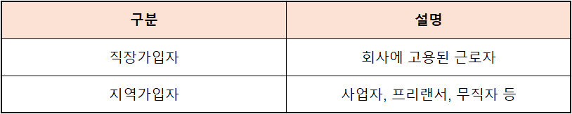 직장을 다니는 사람은 직장가입자가 되고, 사업자나 무직 상태라면 지역가입자가 되는 경우가 많습니다.