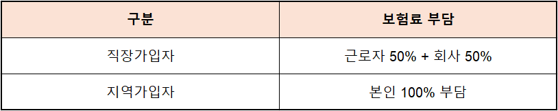 직장가입자는 회사가 절반을 부담하기 때문에 보험료 부담이 상대적으로 낮은 편입니다.