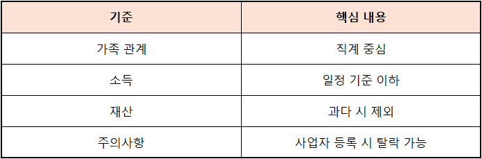 모든 가족이 피부양자가 되는 것은 아닙니다.