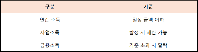 피부양자에서 가장 중요한 기준은 소득입니다.