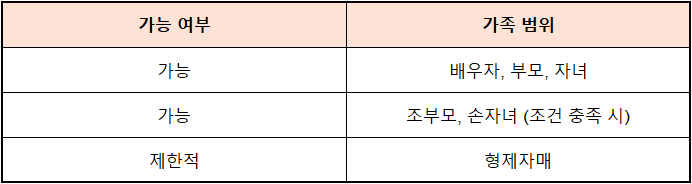 기본적으로 직계가족 중심으로 인정됩니다.