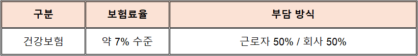 - 건강보험 → 회사 50% + 근로자 50%