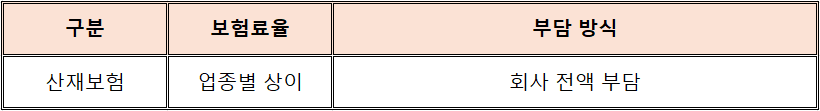- 산재보험 → 전액 회사 부담